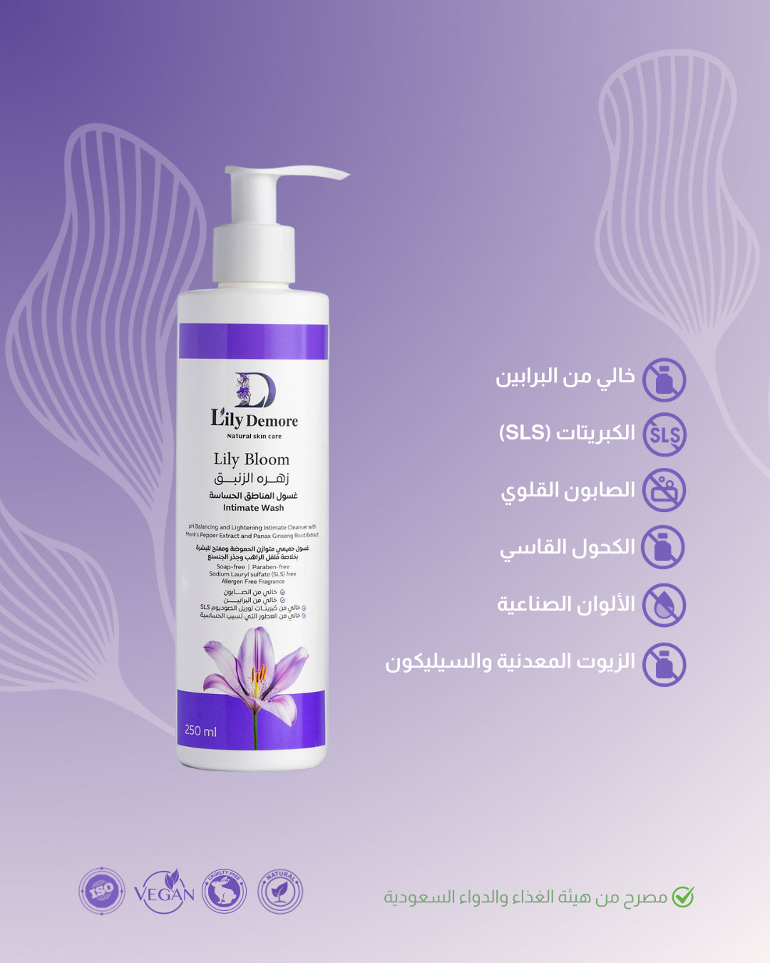 Enriched with premium natural extracts such as Monk’s Pepper and Wild Ginseng, it helps reduce the growth of harmful fungi like Candida albicans and Aspergillus niger, while soothing unwanted odor, itching, and irritation. Provides long-lasting hydration for daily comfort and freshness.